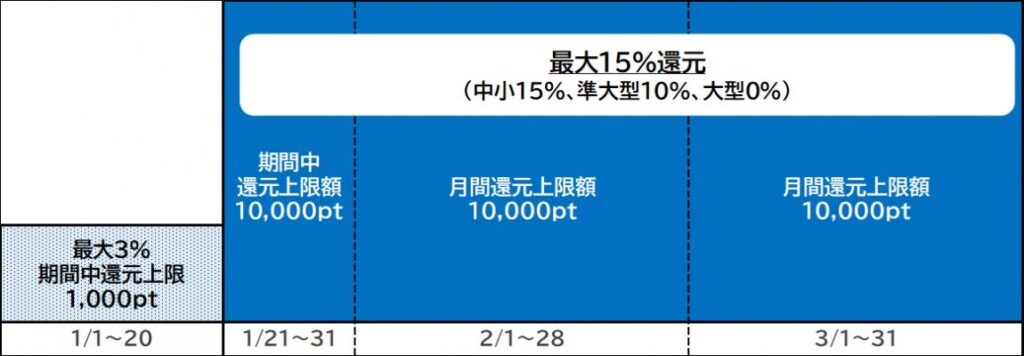 スーパーやドラッグストア関係は高還元の店舗数が少なく、利用者の拠点に左右されそうです。