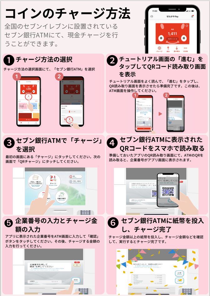- チャージ: 全国のセブン銀行ATMやローソン銀行ATMから現金でチャージ、または銀行口座を連携してチャージします。
