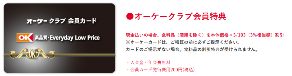 OKもオオゼキ同様、「三菱UFJカード」の高還元対象店舗のため、「三菱UFJカード」を持っている人はそちらを使った方がお得です。