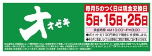 ポイント10倍デー:「オオゼキアプリ」を提示したうえで、「現金」で決済をする